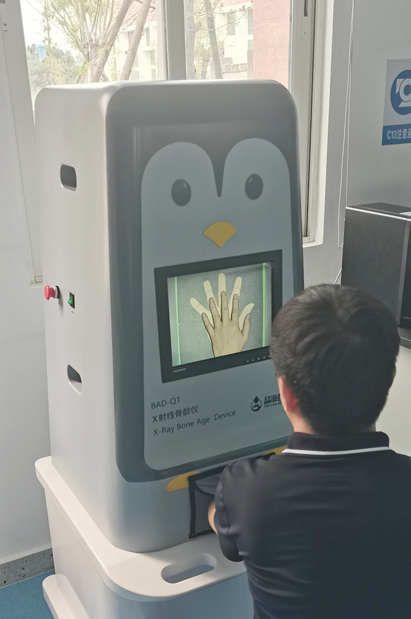 品源醫(yī)療X射線骨齡儀的便捷操作體驗(yàn)也為日常使用帶來(lái)便利。配備的手部限位圖、監(jiān)控屏監(jiān)控?cái)[位以及軟件視頻監(jiān)控功能組成的三方位定位系統(tǒng),能幫助操作人員快速、準(zhǔn)確地定位檢測(cè)區(qū)域,減少重復(fù)拍攝,提升檢測(cè)效率。雙監(jiān)控顯示窗口的設(shè)計(jì),使操作人員與被檢者可同步觀察擺位情況,增強(qiáng)檢測(cè)過(guò)程的透明度與互動(dòng)性。此外,BAD-Q1采用企鵝造型的卡通化外觀設(shè)計(jì),色彩柔和,兒科專(zhuān)用參數(shù)設(shè)置避免過(guò)度曝光,充分考慮受檢人群心理與生理特點(diǎn),緩解在檢測(cè)時(shí)的緊張情緒,保障檢測(cè)的安全性與舒適性。