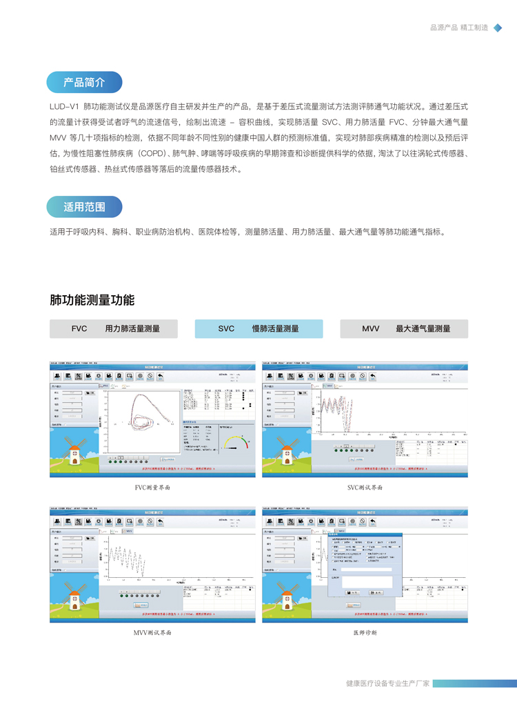 測量參數(shù):用力肺活量 (FVC) 、慢肺活量 (SVC) 、最大通氣量 (MVV)等